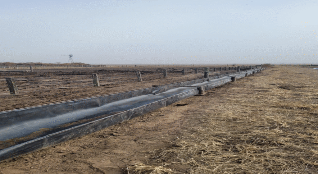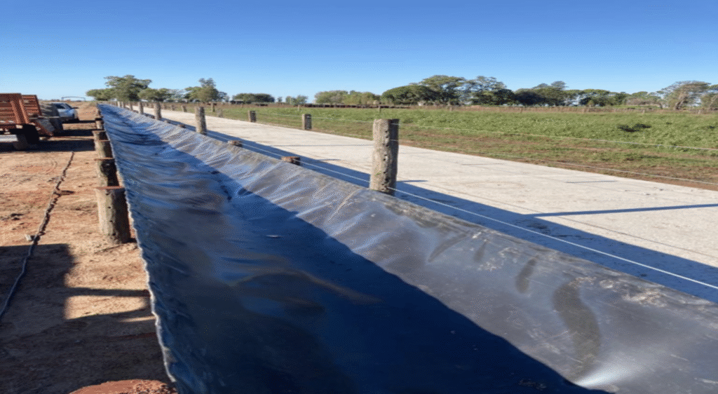 Geo Black presenta un sistema innovador de comederos para feedlot: comederos extensibles fabricados en geomembrana de 1000 micrones y reforzados con alambre 17/15. Una solución práctica, económica y duradera para grandes extensiones.